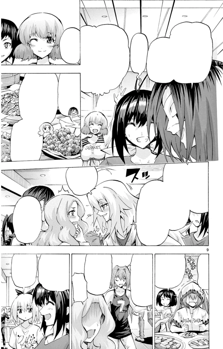 Three months since the new academic year started, the teacher, Nagisa Ujibe opened a chance for regular students to get into the Elite Class, and thus she held a class exchange event. Mio got her turn for the fourth match, where she needed to face against the regular class students, consisting of Ai Shimada, Momo Horiuchi, and Kazane Aoba. When she finally got her turn to fight, Mio mumbled that her own harem party was going to start. Right after the match started, Kazane rushed towards her and assaulted her, whereas Mio was able to dodge it. Mio then teased Kazane by telling that she wanted to pick her up. However, Kazane angered and attacked her once more.